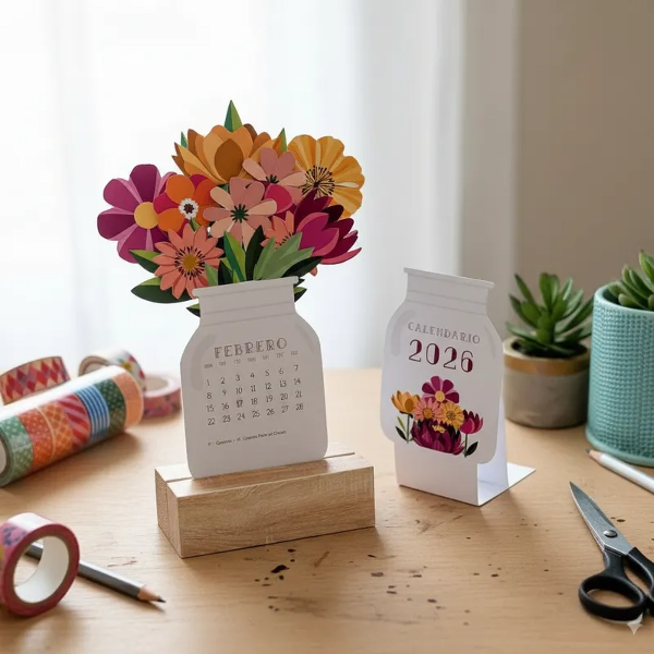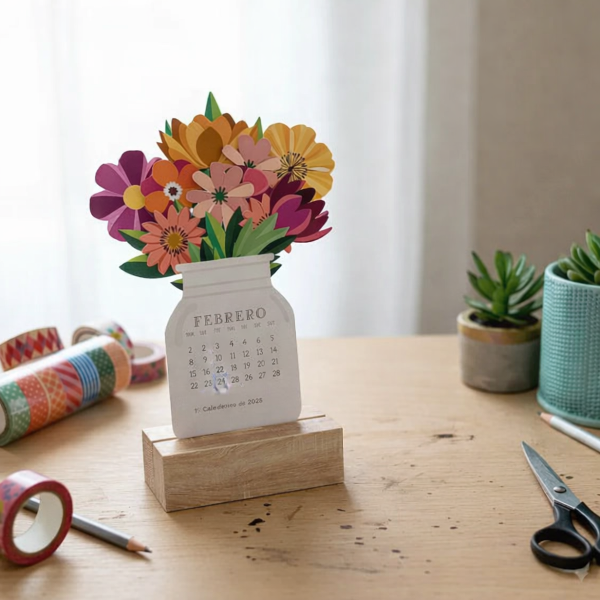 Que incluye este kit: Calendario con frascos con flores en Base