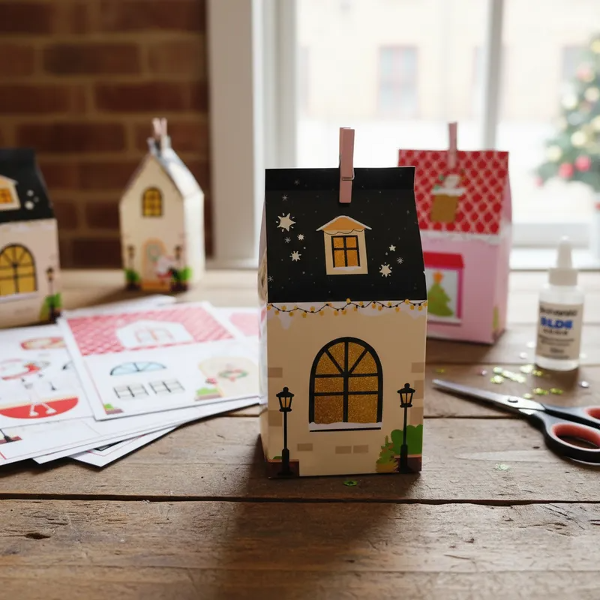 Incluye dos modelos de casitas el de Navidad y el de Año nuevo: