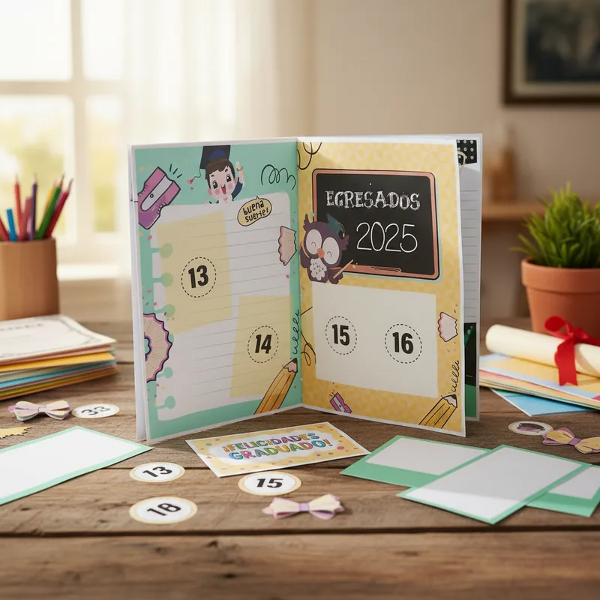 Incluye el modelo completo para imprimir 1 modelo con tapa Egresados 2025 de jard{in PREESCOLAR en PDF listo para imprimir. Diseño prearmado ya listo apra imprimir