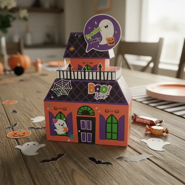Incluye el modelo completo para imprimir 1 cajita casita embrujada como la de las fotos en A4 - 4 hojas ( ocupa 4 hojaA4).