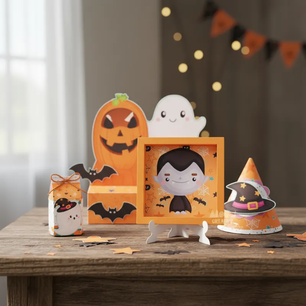KIT HALLOWEEN DECO ( configurado en hoja tamañoA4- podes elegir imprimir los paneles de la pared en A3 cambiando la configuración de la impresora)