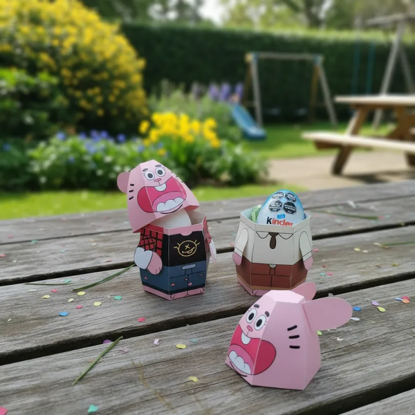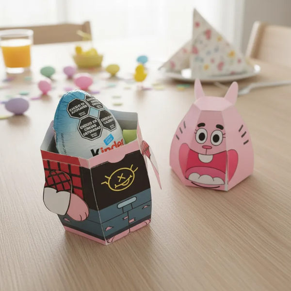 Modelo con diseño en A4 - 2 hojas cada cajita grande y 1 hoja y media las de Kinder Sorpresa