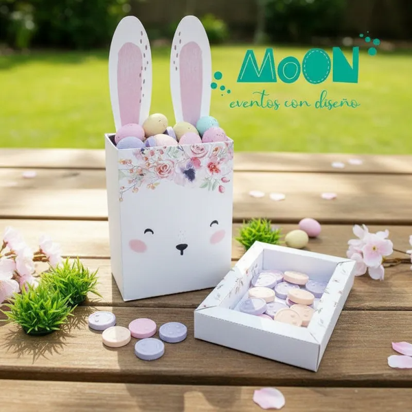 incluye 1modelo completo para imprimir 1 cajitas L{inea Rose Bunny en A4 - 3 hojas cada cajita