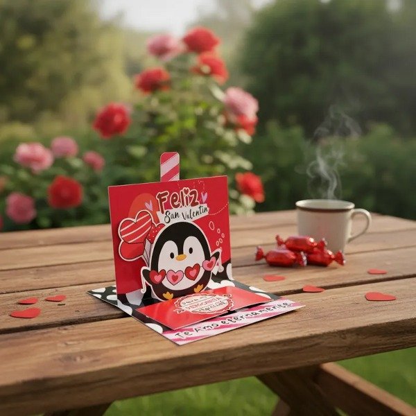 NO ES EDITABLE. EN formato PDF tamaño A4 ocupa 2 hojas la tarjeta y una tercera con tus fotos- Podes no imprimir fotos y escribir una dedicatoria