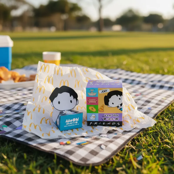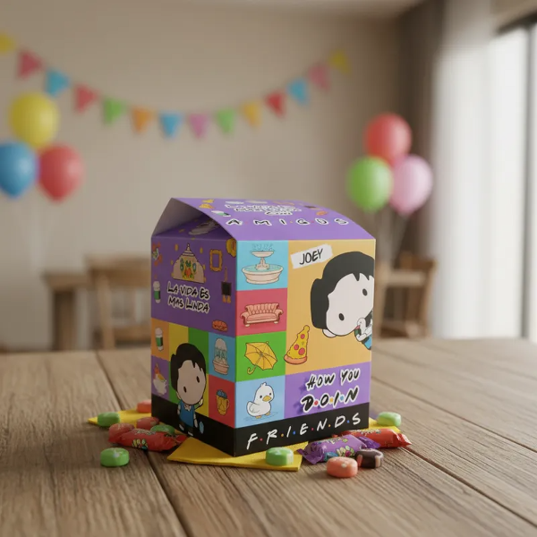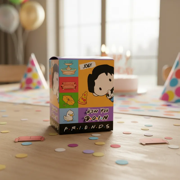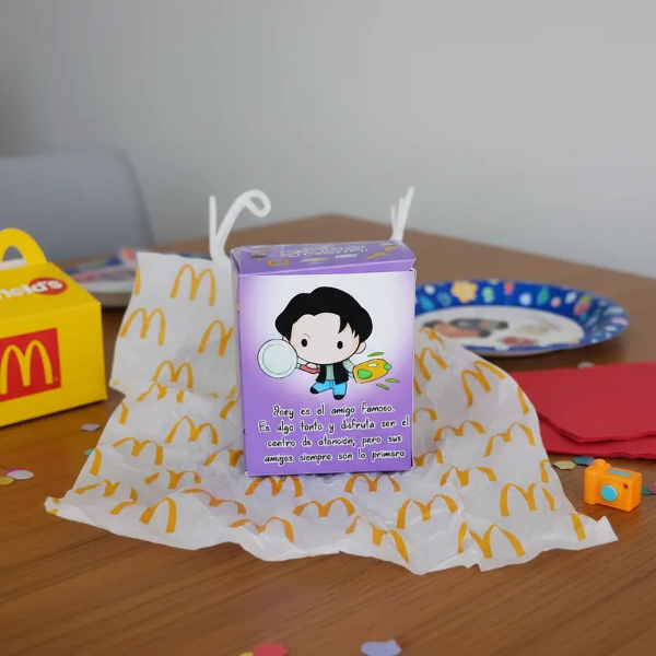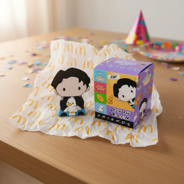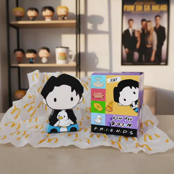 Hermosa caja de la colección Mc Donalds Friends incluye paper TOY Ross la Serie Friends. En brillantes colores para regarle a tus amigos que al igual que vos comparten una hermosa locura. Podés coleccionarlos o hacer una FRIENDS PARTY