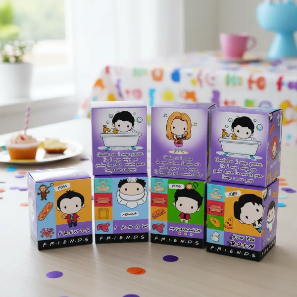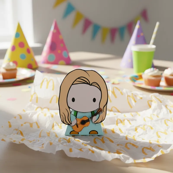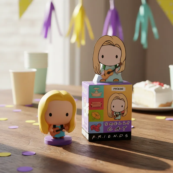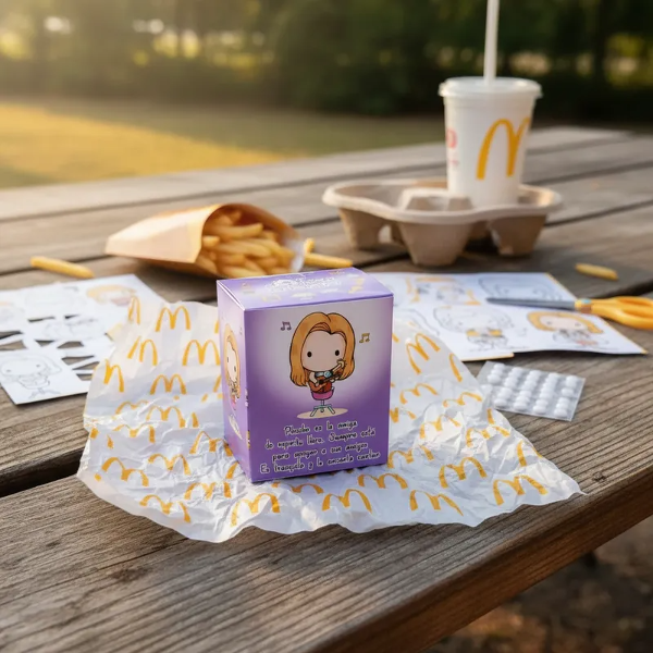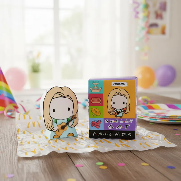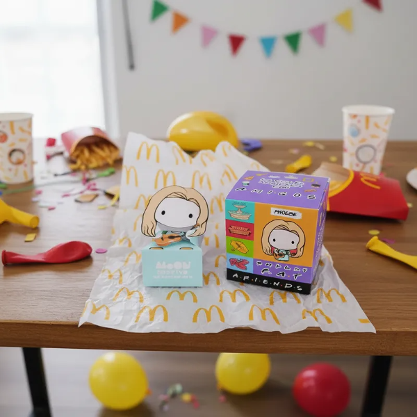 Hermosa caja de la colección Mc Donlads Friends incluye paper TOY PHOEBE la Serie Fiendss. En brillantes colores para regarle a tus amigos que al igual que vos comparten una hermosa locura. Podès coleccionarlos o hacer una FRIENDS PARTY