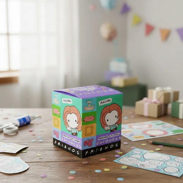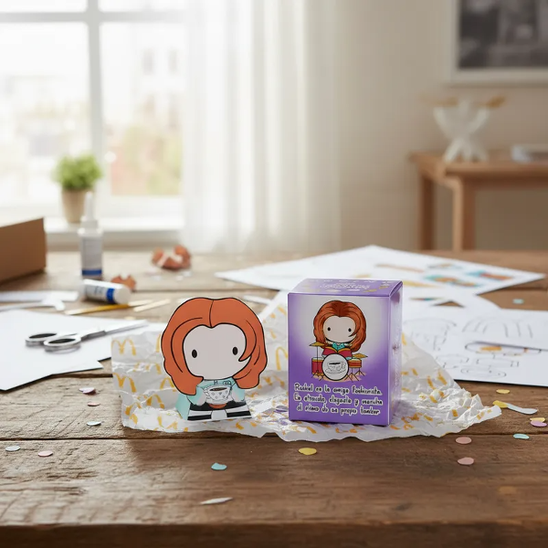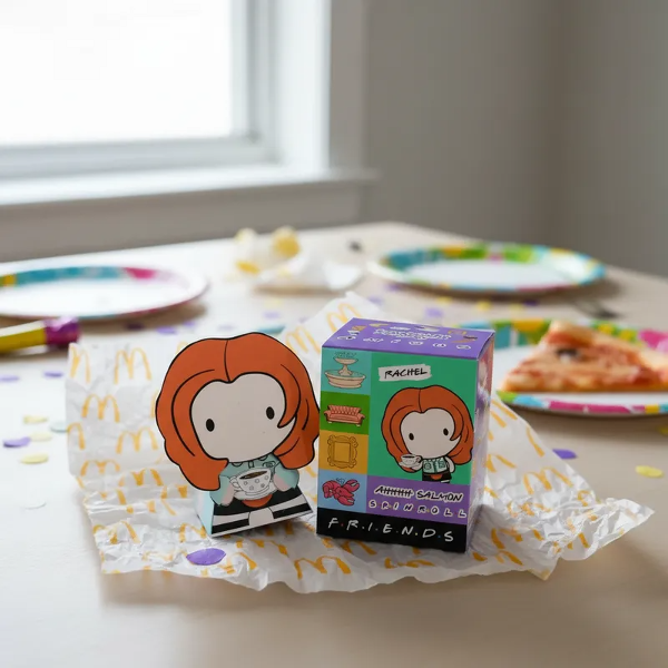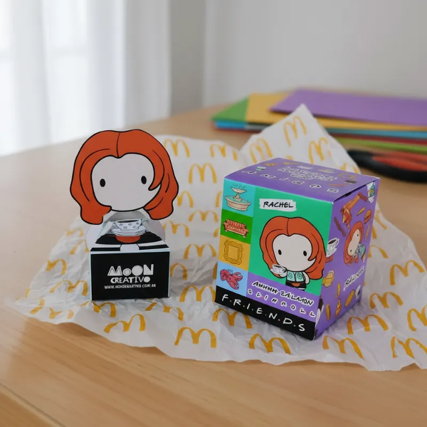 Hermosa caja de la colección Mc Donalds Friends incluye paper TOY Mónica la Serie Friends. En brillantes colores para regarle a tus amigos que al igual que vos comparten una hermosa locura. Podés coleccionarlos o hacer una FRIENDS PARTY