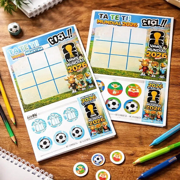 2 tableros TATETI con sus fichas y Etiqueta de Presentación con los las masctas del mundial 2026- Ideal souvenir o regalo