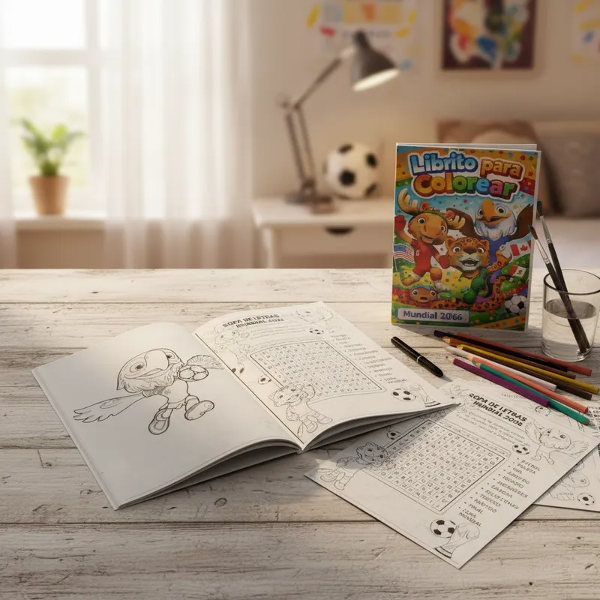 Incluye el modelo completo para 1 librito con actividades del Mundial 2026 . Ideal para souvenir de cumple o para reglar en PDF listo para imprimir. Diseño prearmado