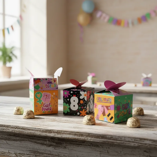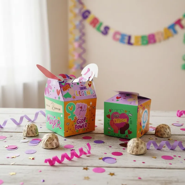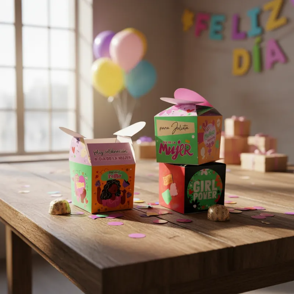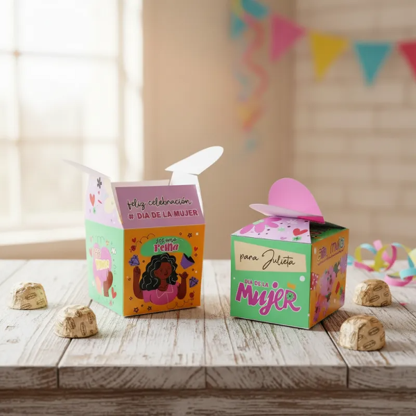 Cajas cierre Corazón Día de la Mujer Girl Power Pack x 4