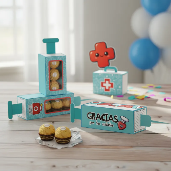 1 cajita con manija para enfermera para 3 Ferrero Rocher