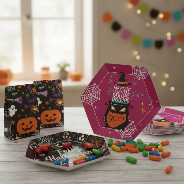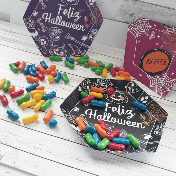 6 DISEÑOS: BRUJA, CALAVERA, FRANKY CALABAZA Y FONDOS HALLOWEN EN 2 COLORES