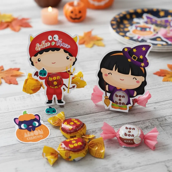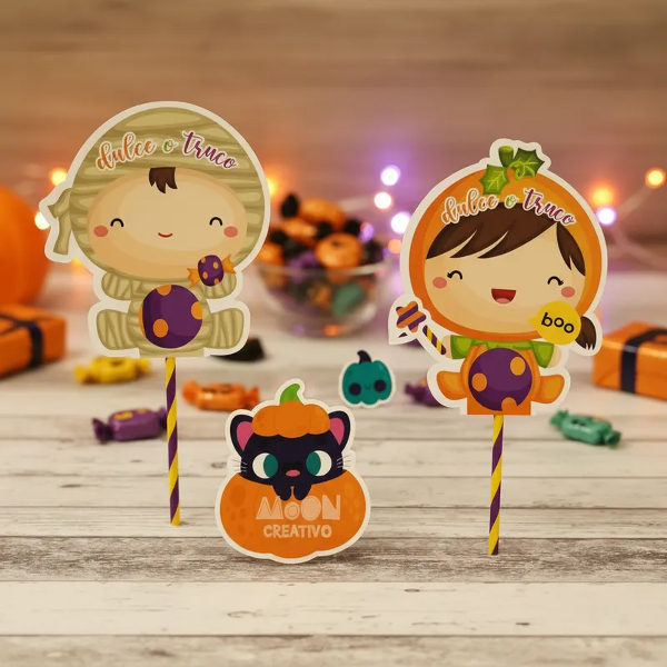 Incluye los 4 modelos para colocar chupetin, bon o bon o dulce sorpresita. Se cala la pancita para que se vea la golosina del interior.