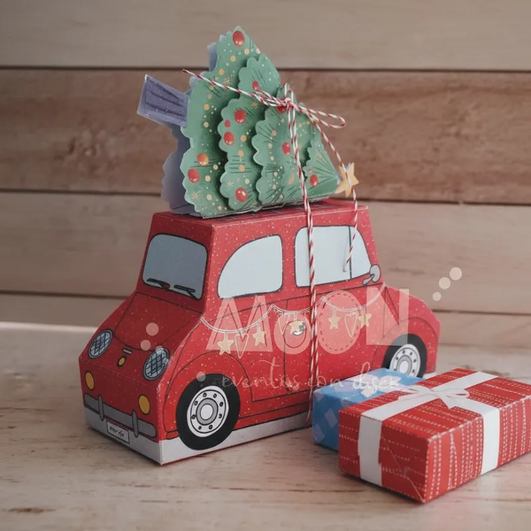 A4 16 x 7,5 cm x 9 cm de alto. Cada cajita ocupa 2 hoja - aparte las cajas de regalo y el arbolito ( opcionales deco)