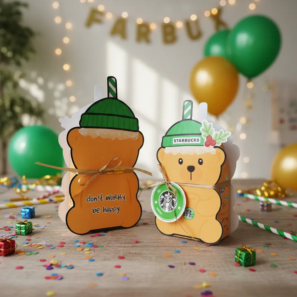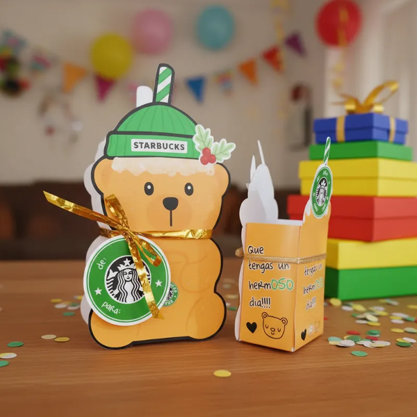 Que incluye este kit: tamaños de caja / bolsa Osito en Homenaje al vaso viral Osito de Starbucks