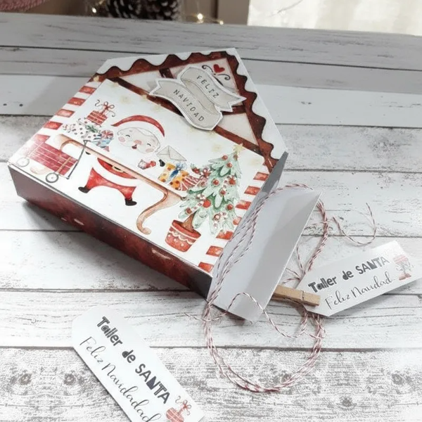 una caja golosinera con diseño y forma especial de Taller de Santa