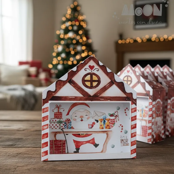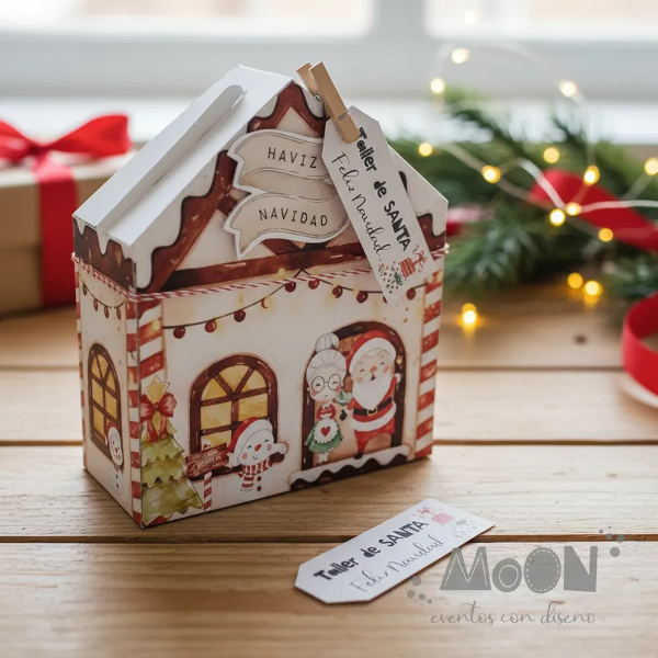 una caja golosinera con diseño y forma especial de Taller de Santa