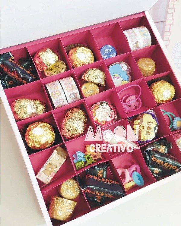 - 24 compartimentos para sorpresitas de 4 x 4 cm con troquel