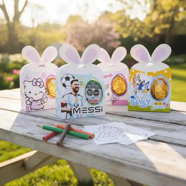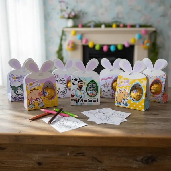 Contiene el archivo 22 modelos de bolsitas con personajes varios. Cada una trae 4 orificios para colocar crayones o lapices. Base para huevo kinder o similar tamaño y aparte trae un PDF con 13 modelos de dibujos para colorear + la plantilla porta dibujitos.
