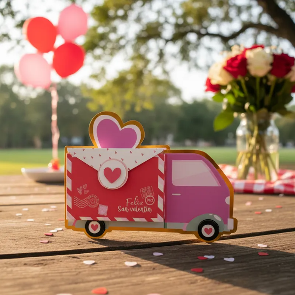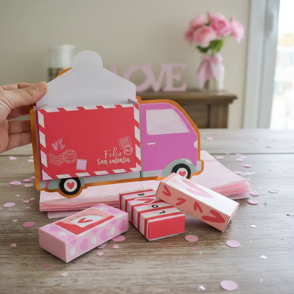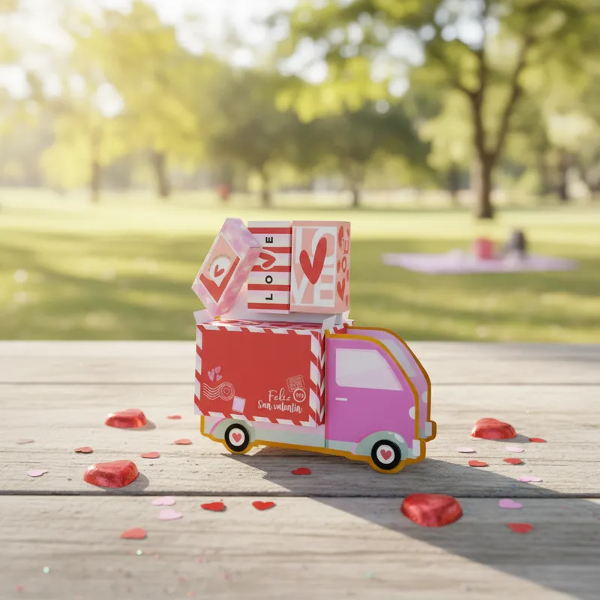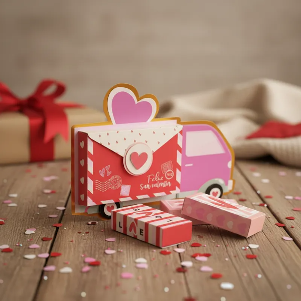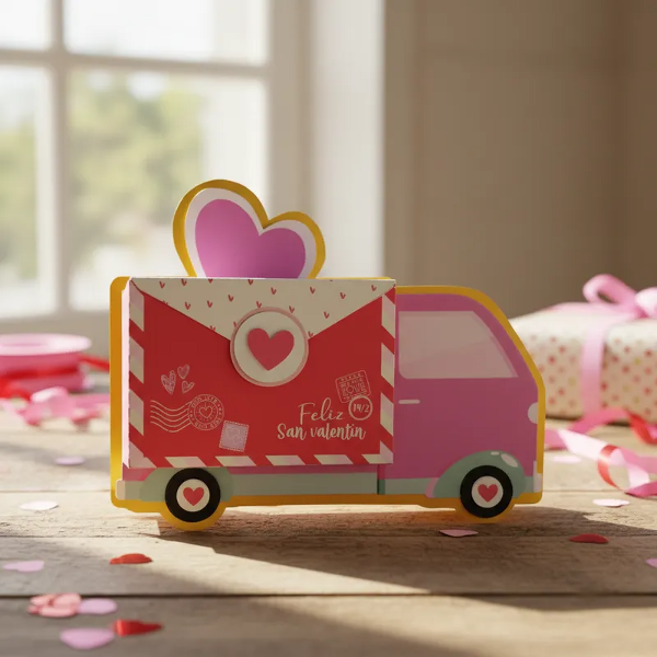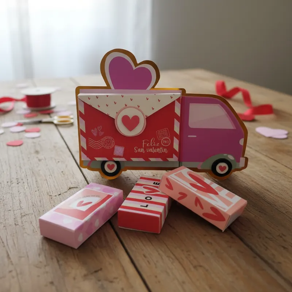Hermosa caja love truck para celebrar San Valentín con mini cajitas