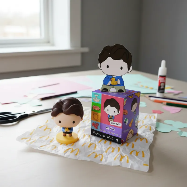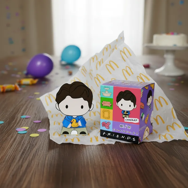 Hermosa caja de la colección Mc Donalds Friends incluye paper TOY Mónica la Serie Friends. En brillantes colores para regarle a tus amigos que al igual que vos comparten una hermosa locura. Podés coleccionarlos o hacer una FRIENDS PARTY