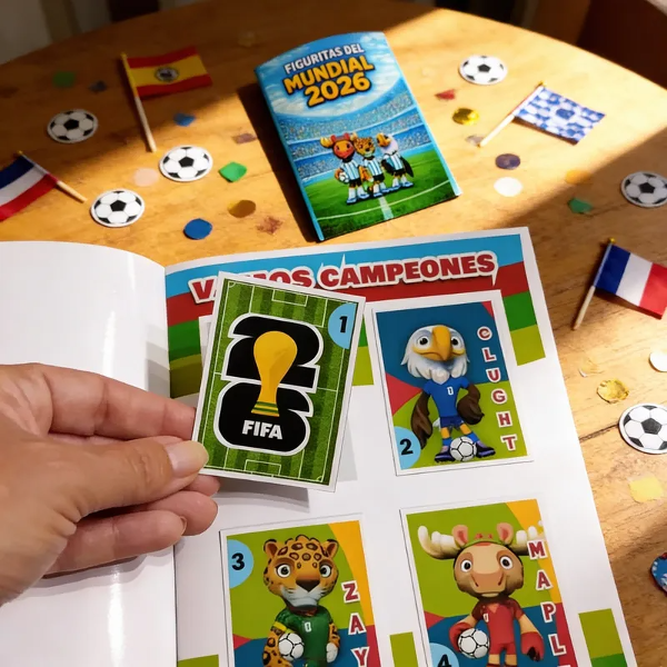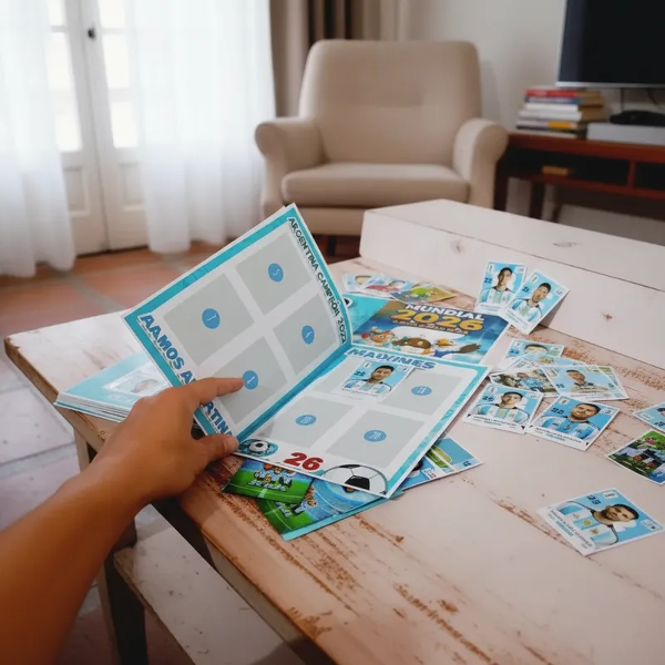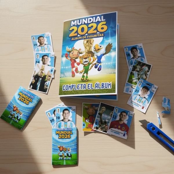 Incluye el modelo completo de 1 álbum Mundial 2026 de Argentina con 32 figuritas en 8 sobres.