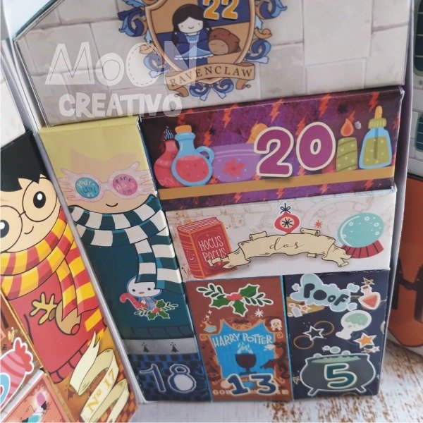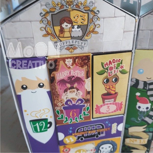 - 4 Casas Mágicas ( cada casa trae 1 caja vertical grande. 2 cajas verticales medianas, 2 cajas horizontales medianas 1 caja triangular con el escudo Insignia de cada una) Se pueden acomodar como gustes respetando esa proporcion. Divertite combiando en forma distintas las cajitas. Primero se acomoda la caja triangular y luedo el resto.